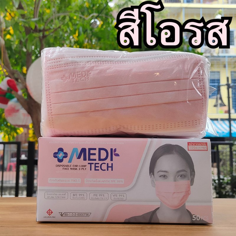 แมสทางการแพทย์ 3 ชั้น meditech บรรจุกล่อง 50 ชิ้น
